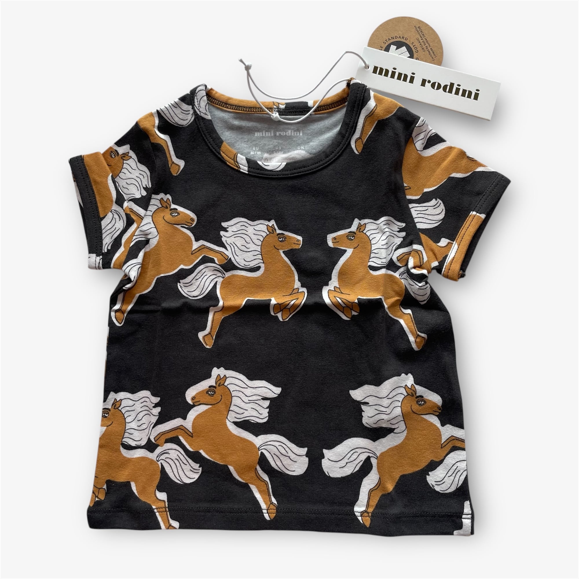 魅力的なデザインと優しい素材感が特徴のオーガニックコットンを使用した子供向けの半袖Tシャツです。可愛らしい馬柄が印象的で、お子様の遊び心を引き立てるデザインとなっています。涼しげな短袖は、季節を問わず重ね着しやすく、さまざまなコーディネートに活躍するアイテムです。優しい肌触りは、お子様のお肌に負担をかけることなく、安心して着用できます。
