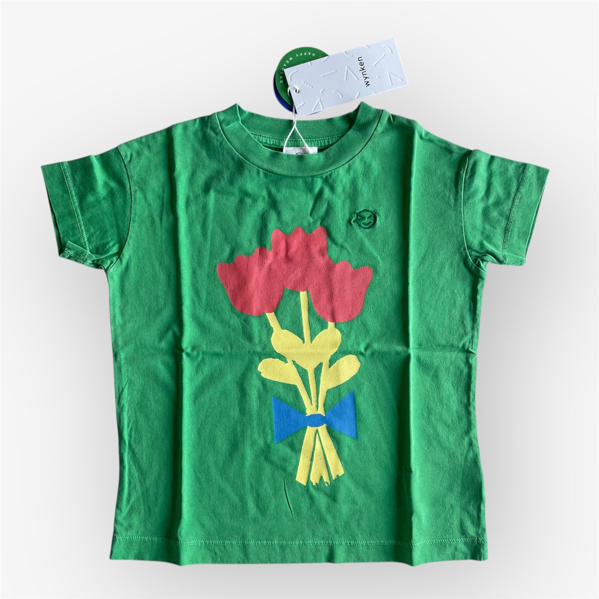 100%オーガニックコットン製でとても柔らかな、チューリップ柄が特徴のTシャツです。デザイン性と心地よさ、そして環境へのやさしさを兼ね備えています。 ソフトなリブ仕上げのネックラインでフィット感も抜群。通気性がよく丈夫なので、毎日の遊びに欠かせない一枚です。